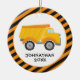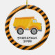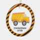 Let your little boy decorate the Christmas tree with this cute holiday ornament featuring a dump truck on an orange and black stripe background and personalized with your child's name and year. Makes a great gift!