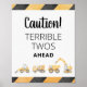Construction Truck Terrible Twos Party Sign