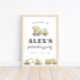 Dump everything, y'all! Celebrate the birthday boy with his favorite thing in the world – trucks! This welcome sign poster design features watercolor bulldozers, trucks, cranes, tractors and excavators.