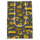 Construction Trucks and Signs Pattern Gray Medium Gift Bag