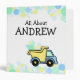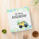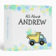 Dump truck and High lift and fun colored confetti dots of baby blue, green and yellow. A binder that you can personalize and fill with your child's documents, artwork, photos and more.