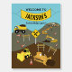Cute illustration of a construction site and trucks theme. Construction truck transportation vehicles include dump truck, excavator, backhoe, bulldozer, crane and front end loader. The perfect design for truck, heavy machinery enthusiasts boys and girls. Ideal Christmas present, birthday gift, nursery decor, kids room art, home decor or back to school. Customize the name and make it your own.