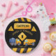 Construction trucks boys birthday party personalized monogrammed printed paper plates template , attractive for kids eye bright colors, nice for toddler age birthday parties table decor.