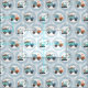 Cute construction equipment with a little boy in mind. Blue and white stripes with mint turquoise and orange accents.