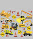 Construction Trucks - Excavator, Crane, Bulldozer, Road Roller, Concrete Truck, Front End Loader and Backhoe. Getting dirty with construction trucks is always fun. Perfect for heavy machinery enthusiasts. Big and small boys and girls truck toys illustrations. The perfect gift ideal for a Christmas present, birthday gift, nursery decor or home decor.