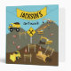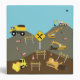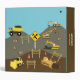Cute illustration of a construction site and trucks theme. Construction truck transportation vehicles include dump truck, excavator, backhoe, bulldozer, crane and front end loader. The perfect design for truck, heavy machinery enthusiasts boys and girls. Ideal Christmas present, birthday gift, nursery decor, kids room art, home decor or back to school artwork artist keepsake binder.