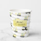 This cute and modern boy's construction birthday paper cup features a white background with construction vehicles such as a dump truck, excavator, crane, and wrecker. Personalize for your needs. You can find more matching products at my store.