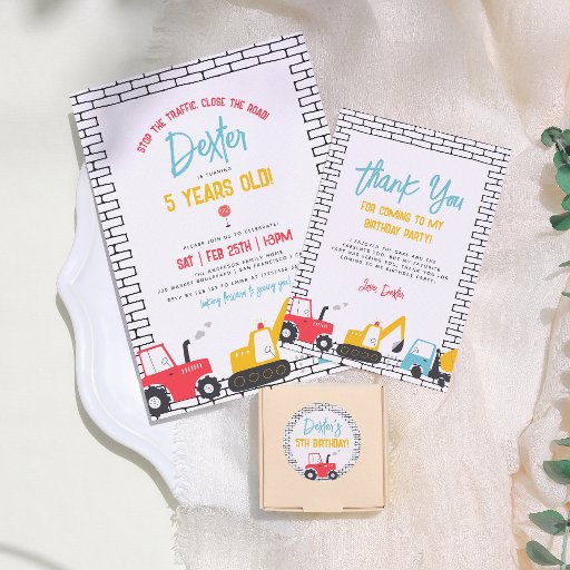 Having your Construction Vehicles Boy Photo Birthday Party Invitation match the theme of your party is a great detail that your guests will appreciate. The thoughtfulness of a consistent party theme is often appreciated and can show your guests that you can host a cohesive event.