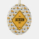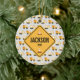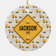 This ornament features a dump truck and front loader pattern with a place to personalize a construction sign with your child's name and anything else you'd like it to say. You can also customize the background color as well as fonts. This ornament is sure to be a treasured keepsake.