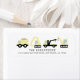 This cute and modern construction address label features a white background with construction vehicles such as a dump truck, excavator, crane, and wrecker. Personalize for your needs. You can find more matching products at my store.