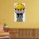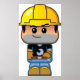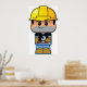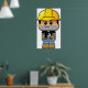 A cartoon style construction worker in a yellow hard hat. This design looks really effective on these Poster
