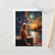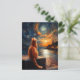Contemplative Ginger Cat | Starry Night Sky Postcard