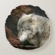 Contemplative timber wolf round pillow