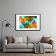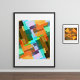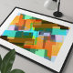 A captivating piece of contemporary framed wall art that is sure to transform your living space. This artwork boasts a stunning abstract design, featuring a dynamic arrangement of rectangles in vibrant shades of green, blue, and orange, complemented by soft accents of light grey, red, yellow, and brown. The interplay of these colors creates a lively yet harmonious pattern, radiating charm and energy in any room.