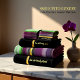 Personalize romantic modern Contemporary abstract in green purple gray silver monogram bath towels with gold foil and a black background