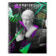 Contemporary art collage with plaster head statue notebook