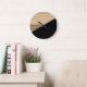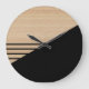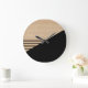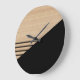 Contemporary Block Stripes Pattern On Faux Wooden Large Clock