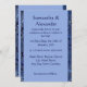 Plain white envelopes are included with paper invitations and will come to fit the invitation size you select. If you don’t need the envelopes, you may choose to not receive them by selecting the dropdown below "Envelopes" and choosing "None." If you’d like to have a design on your envelopes, you can browse all of these available envelopes to find the design that complements your Contemporary Blue Wedding Invitation.