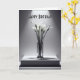 A sleek contemporary glass vase holds several calla lilies bathed in a soft spotlight that creates a dramatic effect for birthday.