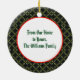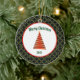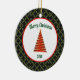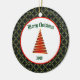 This ceramic Ornament has a green diamond pattern background. In the center, there's a white circle with a red border and a red contemporary Christmas tree design. Merry Christmas text can be personalized. The back of the ornament is similiar and the text can be personalized with own holiday message.