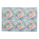A sweet pastel floral print in contemporary style. Flowers are pink, peach, yellow and white on a dimensional pale blue background. The counter patterns in this design give it a quilt-like appearance. You may rotate the image as desired. I show patterns on a large horizontal fleece which fits a king mattress side to side as a neat layer. Seamless image.