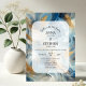 Contemporary Elegance: Blue White Gold Wedding Invitation