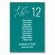 Bold, simple, contemporary, elegant. This design complements a growing collection of unique pieces that are eye-catching and distinctive. Use the template fields to change place-holder details and make the design your own. Other colors and styles are available in this collection. (There is a complementary design for single digit table numbers which better positions the layout of the top line. You may change the background to any color you wish.