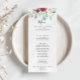 This contemporary eucalyptus floral dinner menu card is perfect for a modern wedding. The design features watercolor purple, blush, bordo and burgundy delightful peonies with green eucalyptus leaves, inspiring artistic beauty.