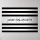 Contemporary Faux Silver Ombre Stripes & Black Poster