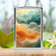 Swirling waves of color blend seamlessly, creating a sense of fluid motion and harmony in teal, yellow, and orange hues