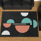 A contemporary geometric design rug in black, white, teal, and salmon orange. Simply add this rug to your cart, get it home, then add it to your space.