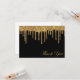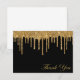Contemporary black thank you note says Thank You in gold glitter and has gold sparkling glitter dripping down across the top. You can customize the reverse side background color to match your event or just for fun!