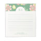 These contemporary notepads with colorful floral detail in green, pink and yellow, are stylish and playful. The design includes a modern set of fonts in matching green and initials, ahainst a soft ivory background.