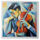 Contemporary jazz musician, geometric triangles, colorful abstract art painting.