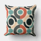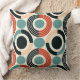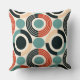 This modern throw pillow embodies a stylish blend of contemporary design and mid-century aesthetics. It features a striking geometric pattern that draws inspiration from the iconic mid-century style, known for its clean lines, organic forms, and emphasis on function. The pillow's design showcases a series of interconnected shapes including circles, arranged in a harmonious and balanced composition.