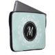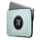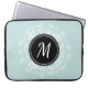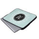 Trendy laptop sleeve with mint blue floral wreath and personalized monogram.