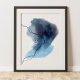 A contemporary, modern abstract art illustration which has a watercolor ink splash in varying shades of blue with paint splashes in blue and black and two black wavy lines. A simple but elegant drawing.