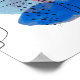 A contemporary, modern abstract art illustration which has shapes in various shades of dark and light blue with black lines and black paint splashes over the top. A simple but striking drawing.