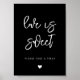 Love is sweet, Please take a treat wedding tabletop sign. A bold and trendy typography for your wedding stationery, simple yet elegant with a black and white theme. Fully customizable: you can change the colors of the font and background if needed.