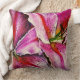 The shades of pink on the enhanced lily painting on the front and of this contemporary throw pillow really stand out, the reds and touches of yellow within the large petals give the image avibrant warm feel. The image on this pillow is my original soft pastel painting that's been enhanced to look different. On the back of the pillow the same lily design is in even more vibrant rainbow colors! The original photo of this flower painting has been digitally played around with to give the color vibrancy to the details to make the image really stand out and the colors pop.
