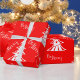 A modern, yet elegant Christmas wrap featuring a red and white theme of white Christmas trees and 'Be Merry' Christmas greetings, scattered over a red background to give your gift wrapping a contemporary, stylish look this holiday season.