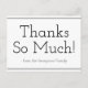 This sleek thank-you postcard design features the message "Thanks So Much!" on the front, along with a personalized message on the back. It could be used to offer thanks to somebody who has attended a wedding, a funeral, or some other event.