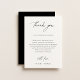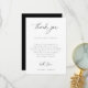 Contemporary Chic Minimalist, Wedding reception thank you table card. Template provides multiple lines for your custom thank you message. Features, black typography on coordinating black and white backgrounds.