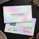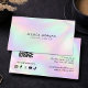 Make a bold, modern impression with this minimalist holographic business card featuring a built-in QR code for seamless digital connection. Designed for creatives, entrepreneurs, and social media-driven brands, this card blends a sleek aesthetic with functional design to help you stand out and grow your online presence. Perfect for content creators, beauty professionals, influencers, photographers, and small business owners, this design allows clients to instantly access your Instagram, website, or portfolio with a quick scan. The soft holographic gradient adds a trendy, high-end feel while keeping the layout clean and professional. Easily customize with your name, handle, and contact details to create a polished and memorable brand experience. Design by 1201AM Creative Studio