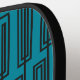 This pickleball paddle has a Kandinsky inspired design of sets of four rectangles made by a continuous black line repeating across the design on a field of teal. If you like the design but prefer different colors, message me.