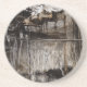 I'm not sure how much moisture these will soak up, haven't had a chance to try them out, but they look good and I like the cork backing. The printing is fine ~ and really looks cool with an artisan's hand made "Hurricane Martini" glass sitting on top of my painting (on the coaster) in my studio.