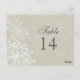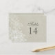 Graphic flowers outlined in white against a soft taupe make a beautiful statement on this double-sided table card. A sentimental look for a special day. Design is duplicated on both sides so that the table number can be seen however its placed on the table. Available in alternate colors with matching products.