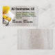 This card is a construction company business card for builders and contractors