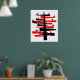 An abstract tree in red and black with small triangular birds perhaps singing in the dawn. Two of the birds one in red and one in black sit having a conversion on a lower branch. But of course the whole composition is like a conversation in shape and color. The tree is perhaps not unlike a Cedar of Lebanon. According to the Sumerian Epic of Gilgamesh the Cedar groves of Lebanon were seen as the dwelling place of the gods.
