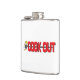Well made flask, a little better than I had expected. Flask came in clear plastic box which gave it a nice presentation when I took it out of the zazzle packaging. Image is not printed on flask but on sticker. Don't know how this will hold up I haven't used it yet. This would make a Great gift! I plan to purchase more for friends! Cheers. I thought a little brighter than computer. Very crisp, writing wasn't